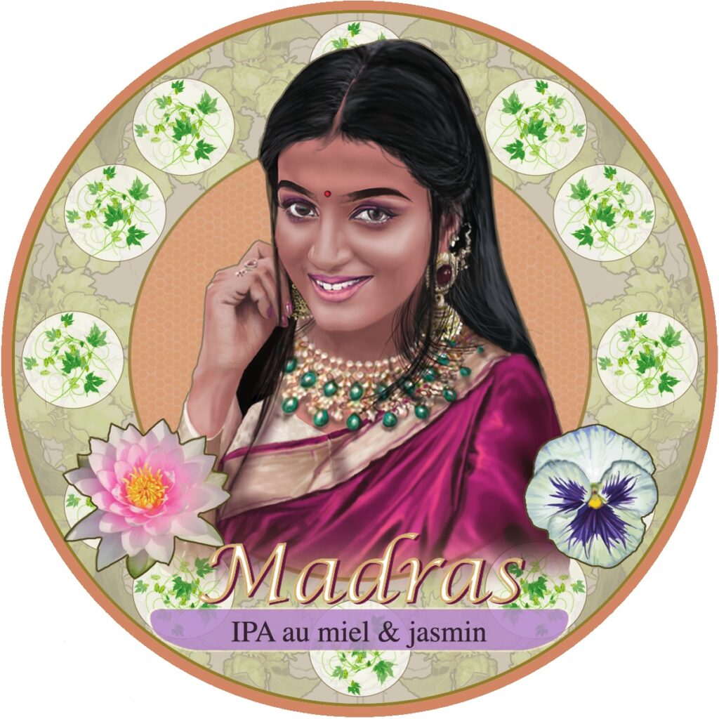 Ensuite, prenons le large, direction Madras, mon India Pale Ale au miel et Jasmin. Ses houblons originaires de Grande-Bretagne lui confèrent une amertume bien présente et très florale. Un voyage dans le temps et l’espace jusqu’en Inde coloniale avec son entêtante senteur de Jasmin.