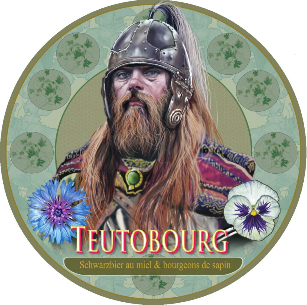 Teutobourg, quand à elle, est une « Schwarzbier » (« bière noire » en allemand) aux notes boisées grâce à l’ajout dans sa préparation, de bourgeons d’Épicéa. Son style comme son histoire reviennent sur l’antique et marquante bataille qui se déroula dans cette sombre et sauvage forêt germanique (au nord-ouest de l’actuelle Allemagne).