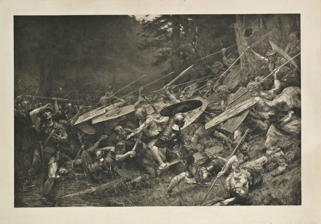 En effet, c’est le nom que porte une forêt et par extension, la bataille décisive remportée par les tribus germaniques sur le conquérant Romain, au tout début de notre ère (en 9 après Jésus-Christ). Cette victoire des « Barbares » mit un coup d’arrêt à l’expansion romaine et figea durablement les frontières culturelles entre Europe de l’Ouest et de l’Est.